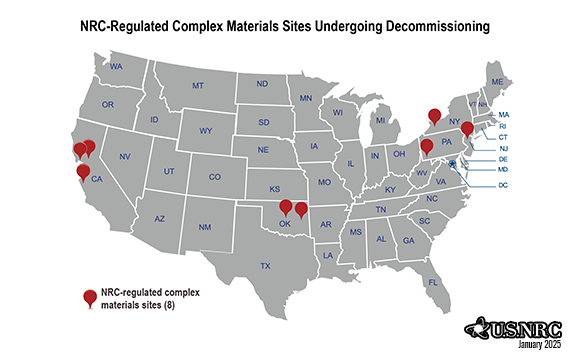 Location of complex materials decom sites map photo NRC-Regulated Complex Material Sites Undergoing Decommissioning