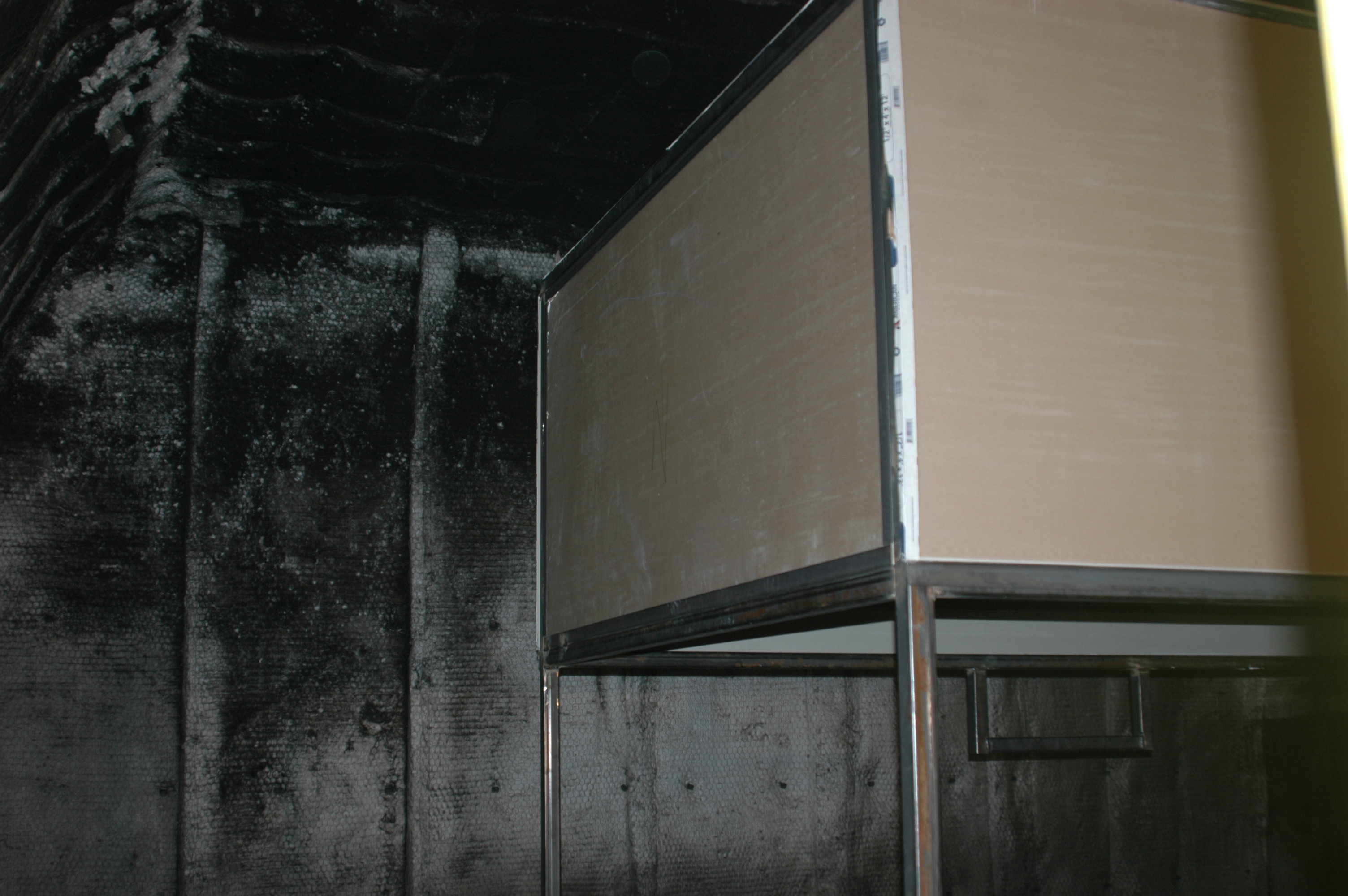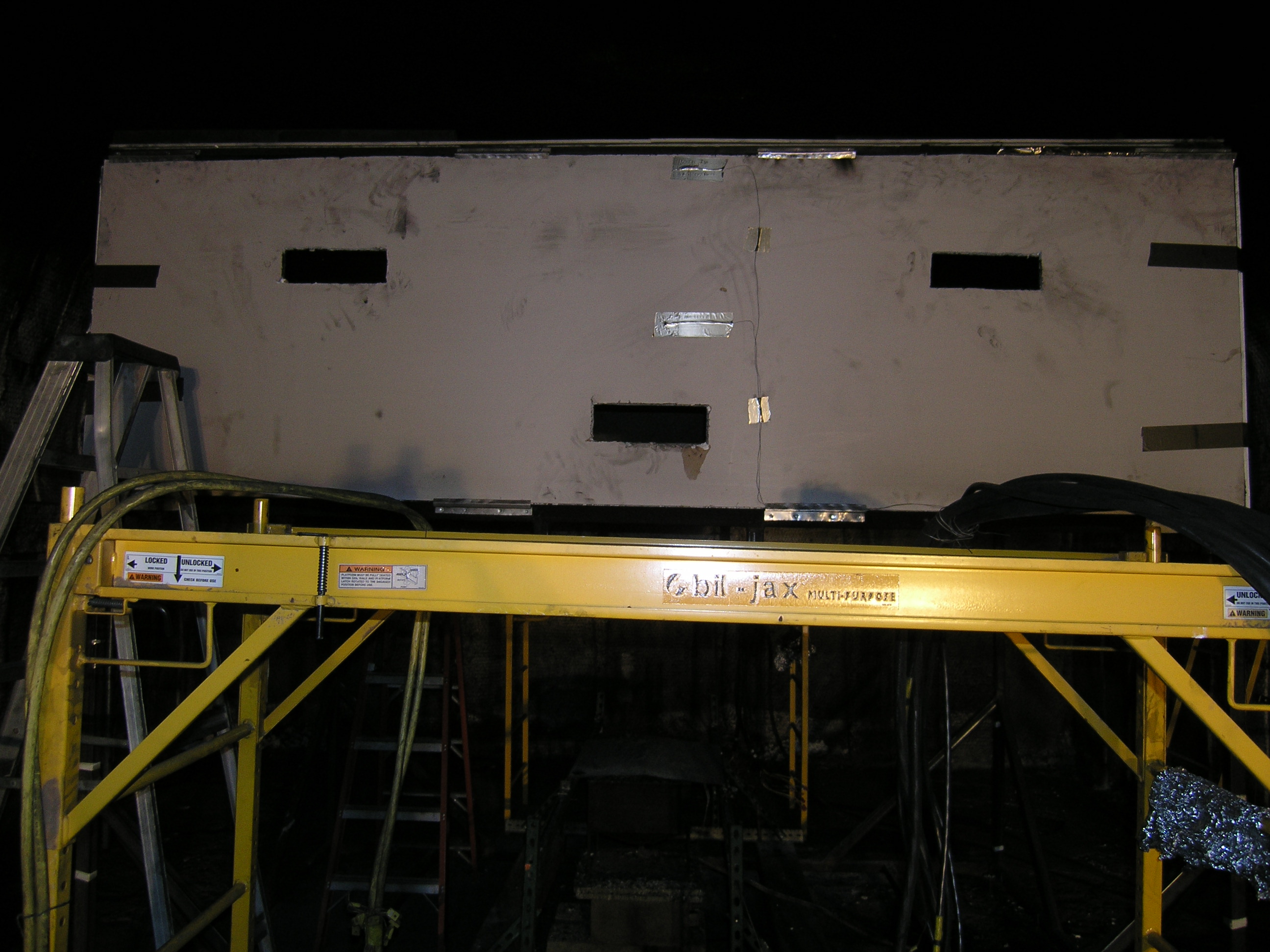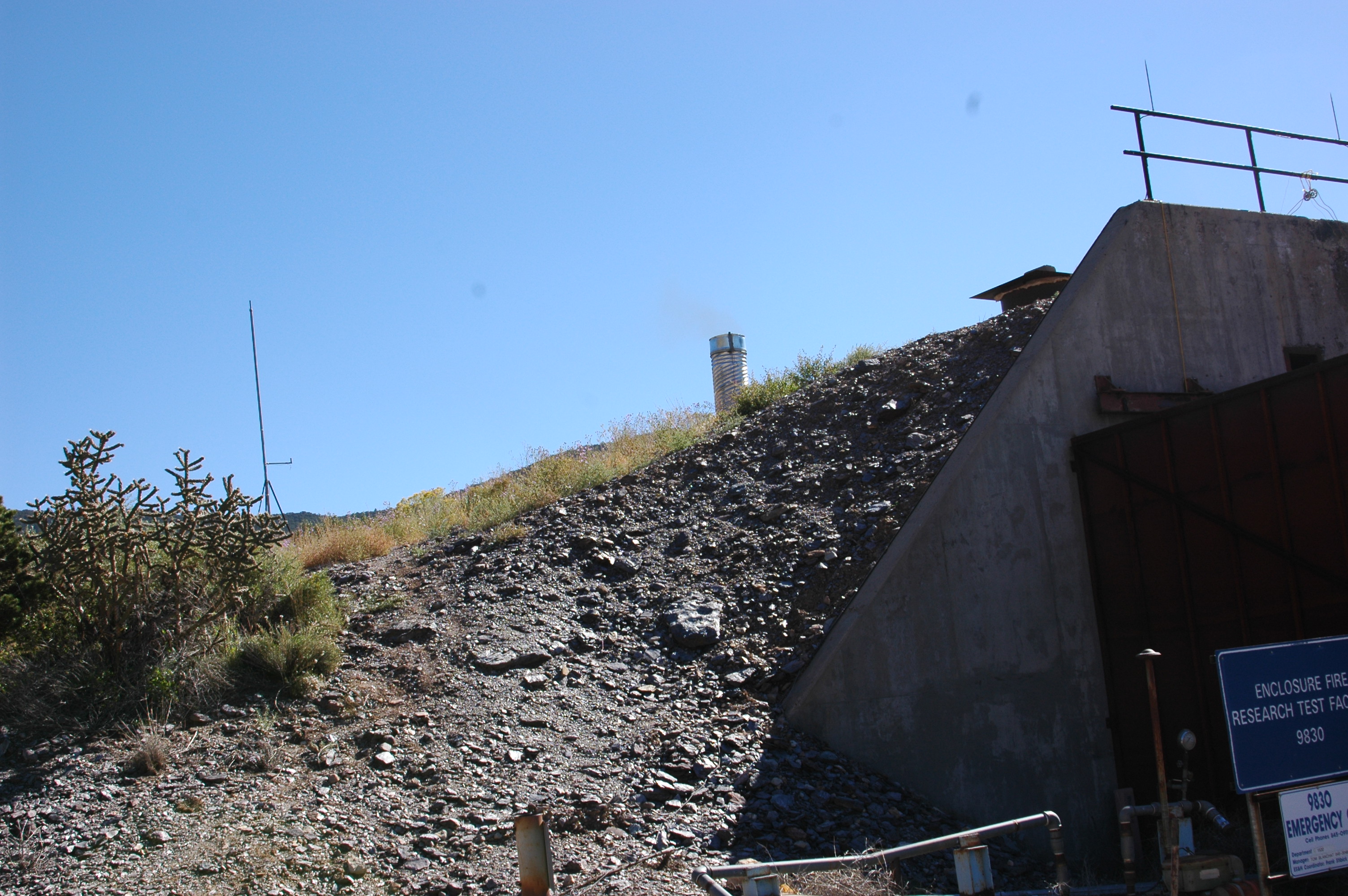 The photographs on this page depict the bunker and test cell used in the CAROLFIRE intermediate-scale tests discussed in NUREG/CR-6931. Although they were taken during the tests, these photogaphs are not intended to provide detailed test documentation. Rather, they provide a generic representation of the facilities used, as they were installed for the intermediate-scale tests.
