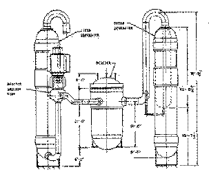 Second, unlike the B&W "lowered loop" design, the steam generators are located at a higher elevation than the top of the reactor core. In this design, as the coolant level in the primary system drops, it will be more difficult for deborated coolant to remain in the steam generators. In contrast to this, in the B&W lowered loop design, the coolant level can drop to the top of the active core, and there will still be some deborated coolant in the steam generators.